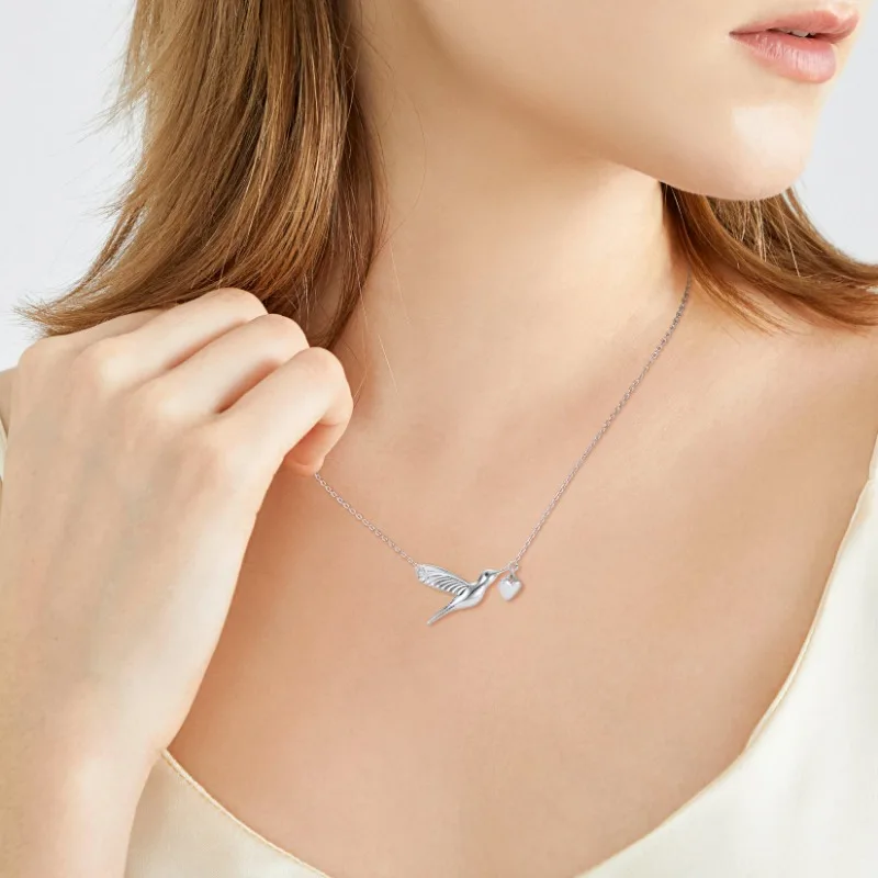 Elegant Sterling Silver Hummingbird Pendant – Women’s Animal Charm Necklace