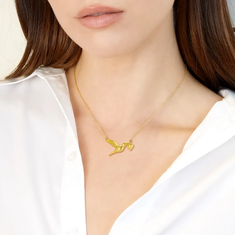 Celebrate grace and charm with this Chic Sterling Silver Animal Jewelry Necklace. Designed with a flying hummingbird and heart charm, it’s a versatile piece that pairs beautifully with everyday outfits or special occasions.
